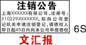 上海文匯報公司注銷公告怎么寫?請看下面的案例,選擇適合你的,改為自己的信息就可以了,需要在文匯報上登報注銷公司,請找登報網